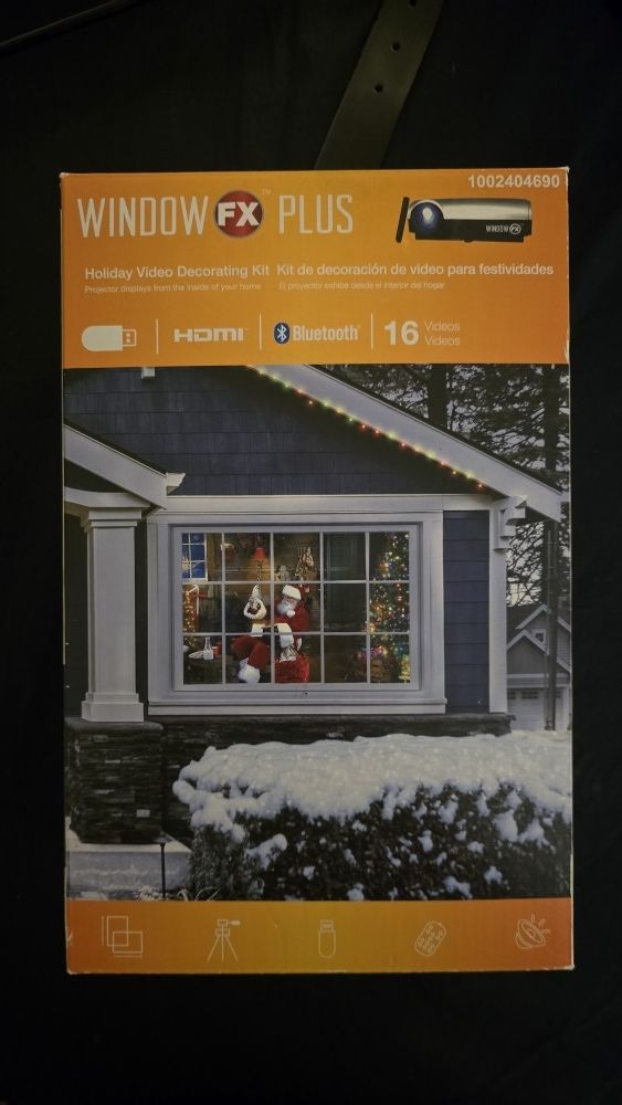 Selling a Window FX Plus Holiday Video Decorating Kit! It projects videos from inside your home. Comes with the box and all components, including the projector, charger, instructions and a USB drive with pre-programmed Christmas and Halloween displays. You can even project your own displays via HDMI cable or via USB. Get ready to decorate for the holidays!