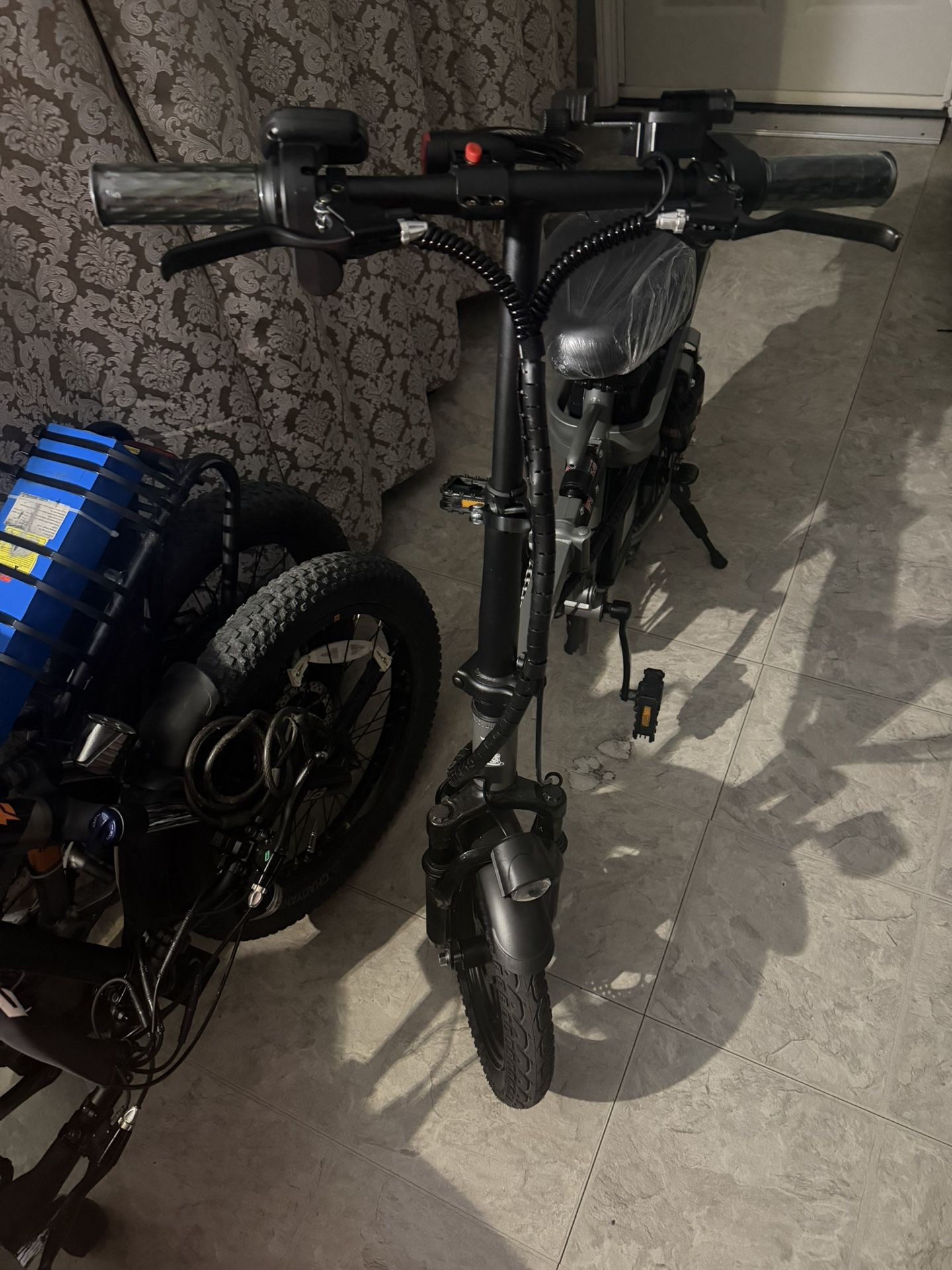 It’s brand new used twice and just collecting dust $600 obo serious buyers only local only and also into trades for other e bike or scooter or ps5 has two sets of alarm keys two sets of keys for battery and ignition as well and has back seat for passenger and hits 21 plus miles per hour has charger as well any questions lmk thank have a great day thanks for looking .