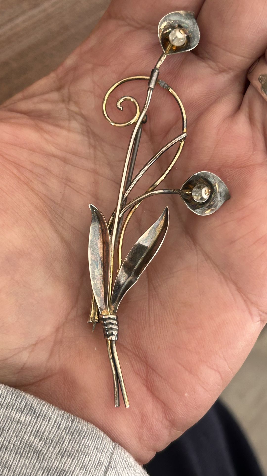 Vintage Van Dell Gold filled And Sterling Silver Large Tulip Design Brooch
