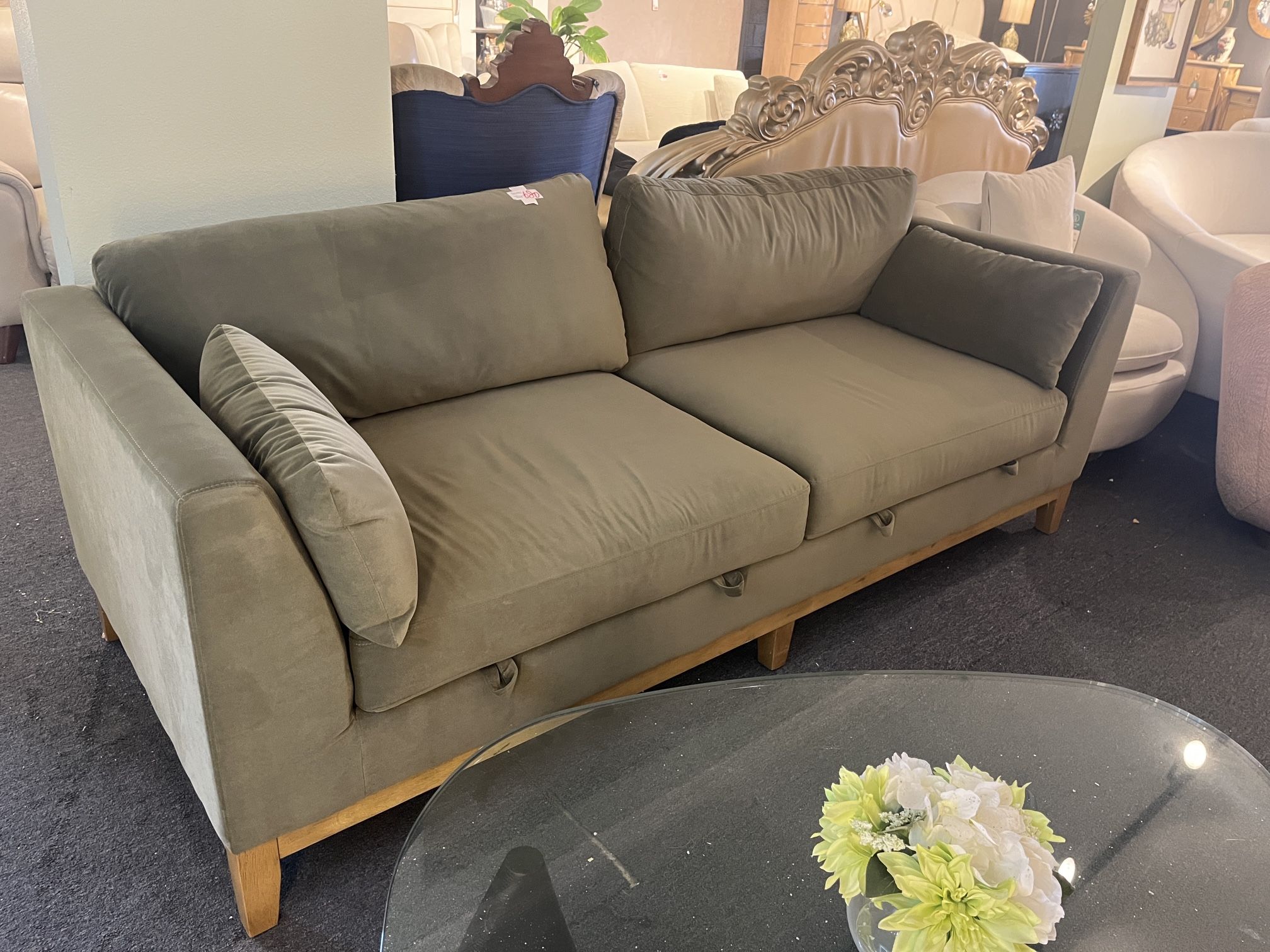 Green velvet storage sofa,$680