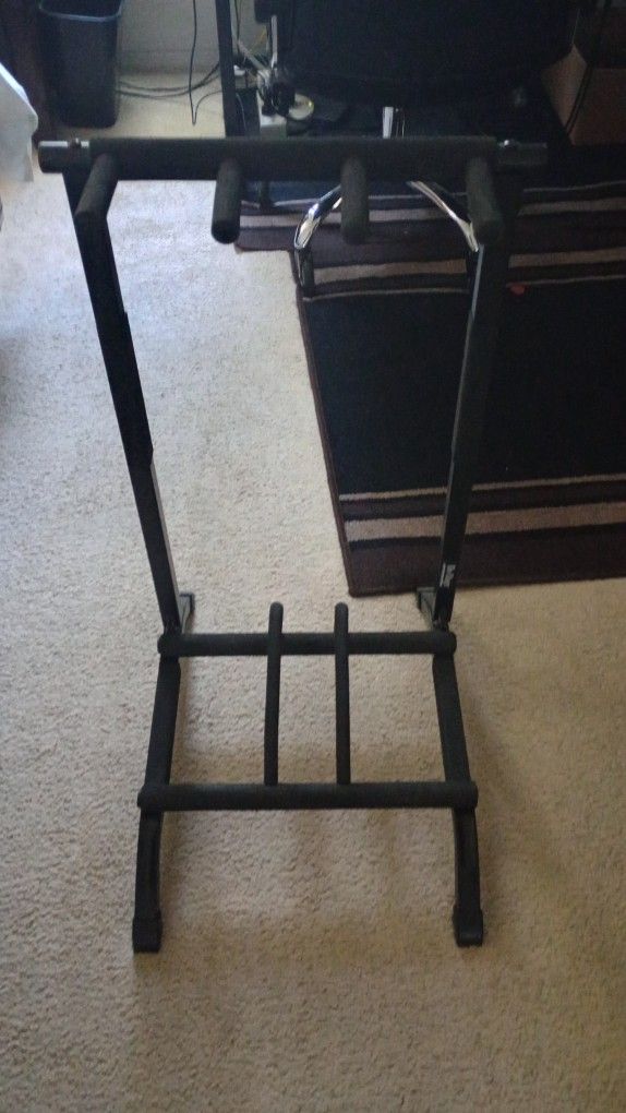 Hello players. Letting go of my 3 stand guitar holder as I needed to purchase a bigger one to hold more guitars. Either way the stand is in mint condition and needs a good home. Want a guitar or amp to go with it check out my listings. Thanks and follow me as I am posting often new gear.
