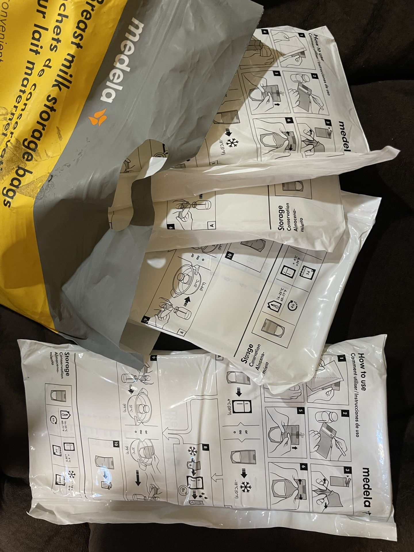 200 breast milk storage bags. Self standing double zipper. Space saving, easy pour, and you can write on them to keep track