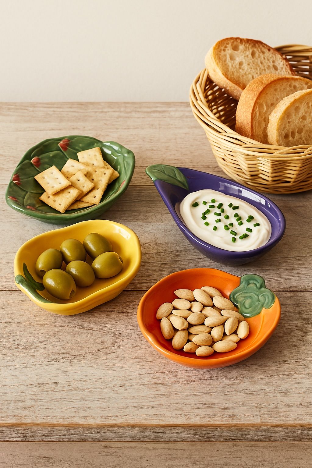 Williams Sonoma 2000s Jardin Potager Ceramic Veggie Bowl Set Of 4, 5.5” SHIPPING IS INCLUDED PLEASE NOTE: The first image is an artistic representation; all other photos show the actual item. Pictures are part of the description — please check them carefully and message me if you need additional photos or have any questions. New in box — set of four hand-painted vegetable-shaped bowls from Williams Sonoma’s Jardin Potager Collection. Glossy glaze colors include artichoke green, eggplant purple, yellow bell pepper, and pumpkin orange. Perfect for dips, snacks, or small portions of prep ingredients. Fascinating Fun Facts: • “Jardin Potager” is French for “kitchen garden,” celebrating the art of growing vegetables and herbs for both beauty and the table. • The collection was designed with rustic French countryside charm and produced in the 2000s. Discontinued: 2007 Dimensions: 5.5 in each bowl Box: 12 x 9.5 x 2 in Weight: 3 lb Love more than one item from my store? Feel free to message me—I’m always happy to combine shipping or create a custom bundle just for you.