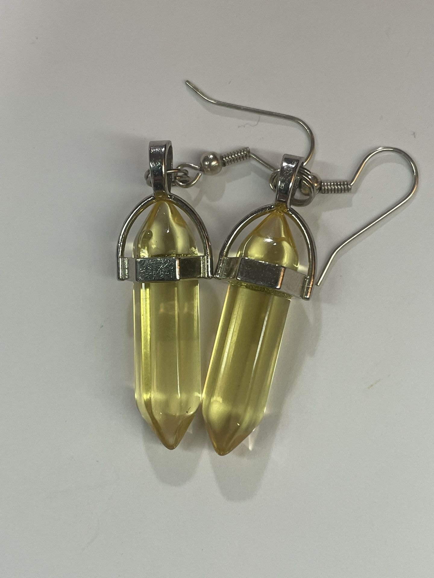 Set of earrings made from double point crystal pendants with stainless caps the earrings can be taken off and these can be used as two separate crystal necklace pendants also
