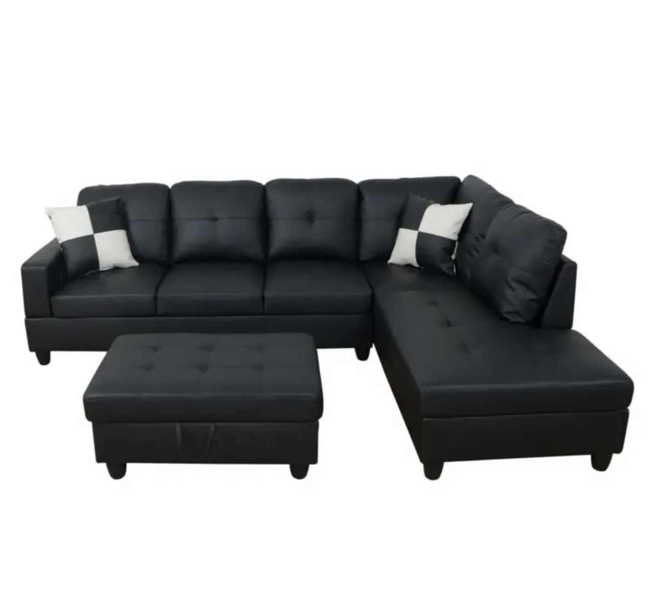 Sectional Couch with ottoman Black, faux leather Condition is NEW Delivery available