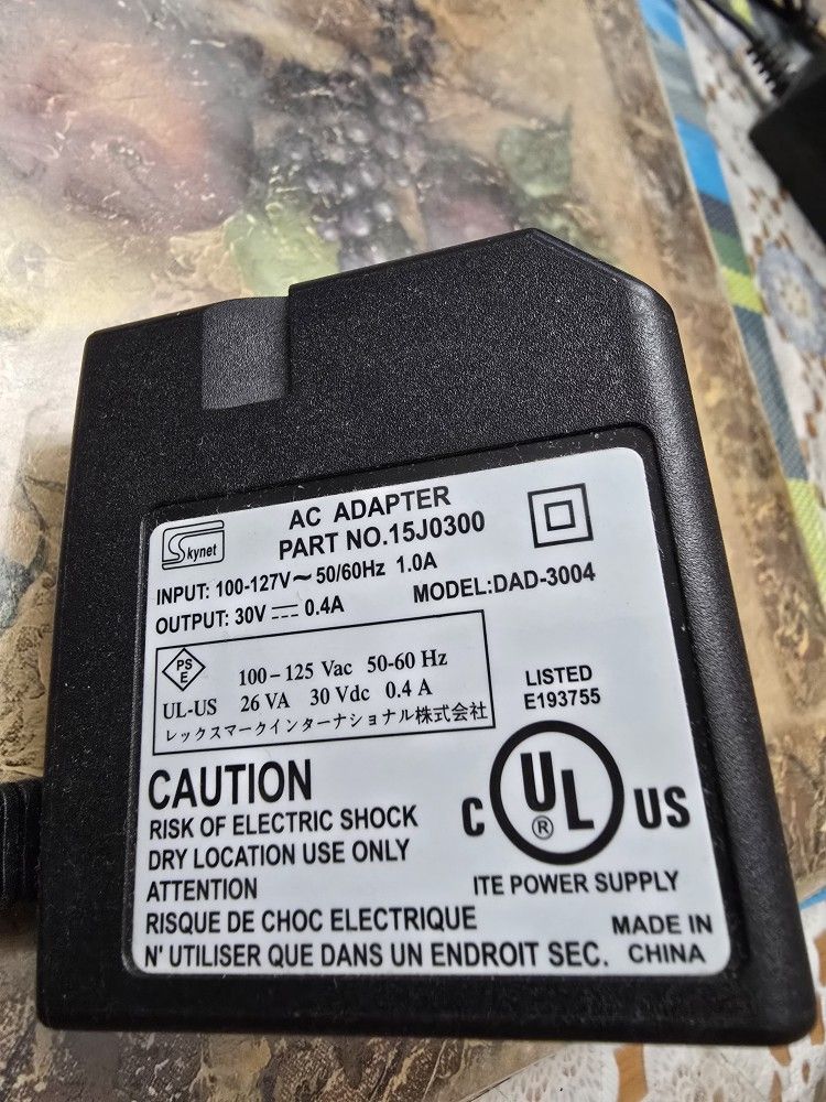 SkyNet AC Adapter Printer Power Supply Model: DAD-3004 30V~0.4A PN A15J0300