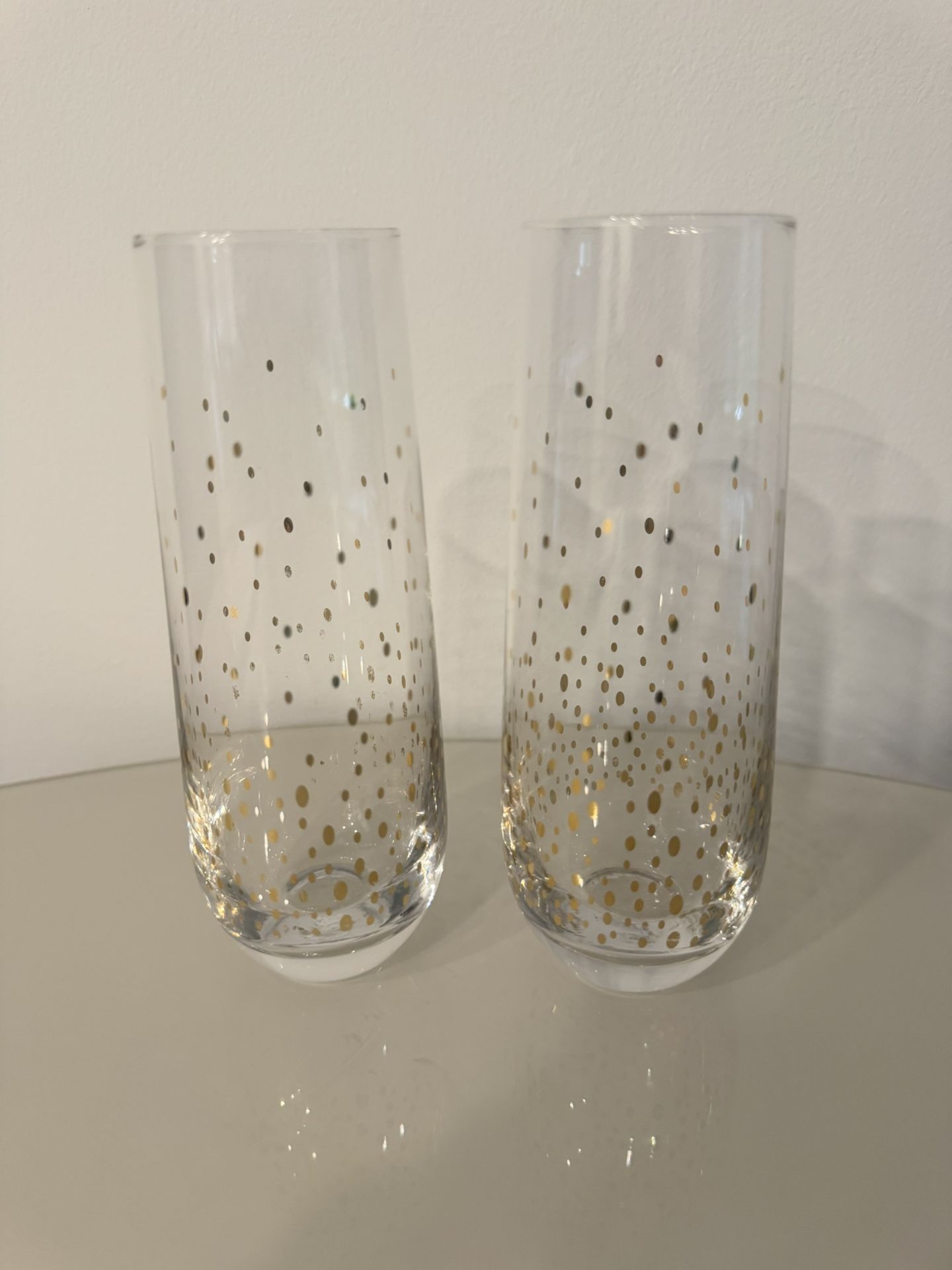 Champagne flutes with gold accent. $6 includes 2 glasses