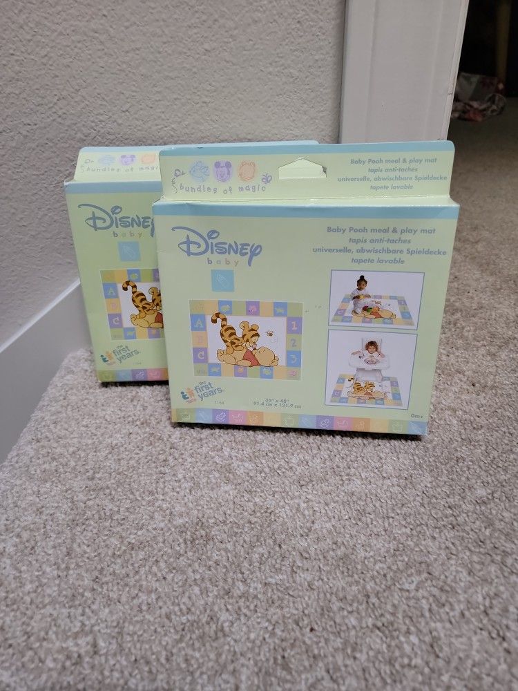 Vinyl type mat that you can use indoor or outdoor, for play, art projects, under eating areas, etc Wipes clean easily 2 available, both new in box, $5 each Ppu by Northshore ymca
