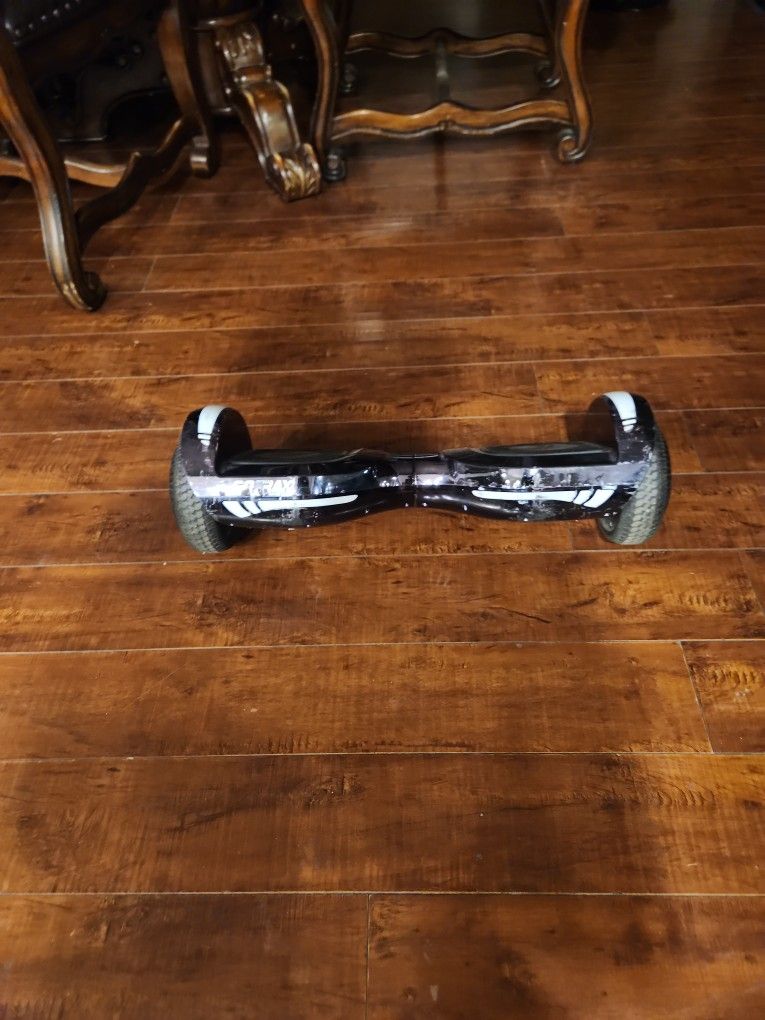 A hoverboard that still works good, used but not broken, it has Bluetooth speakers so you can listen to your own music.