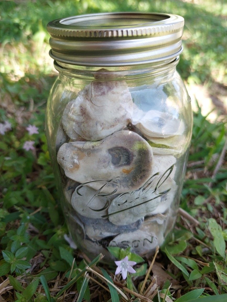This 32-ounce jar contains 1 lb of Eastern Oyster Shells. All shells were collected directly from the ocean quite recently. Shells range in different sizes and colors. Great for art, jewelry, gifts, decor, and garden landscaping. For indoor and outdoor use. The jar used for the shells is a Ball glass jar. This jar was made and signed by the Youtuber Big G from Big&Gucci4Ever. 1 in stock and $15 a jar.
