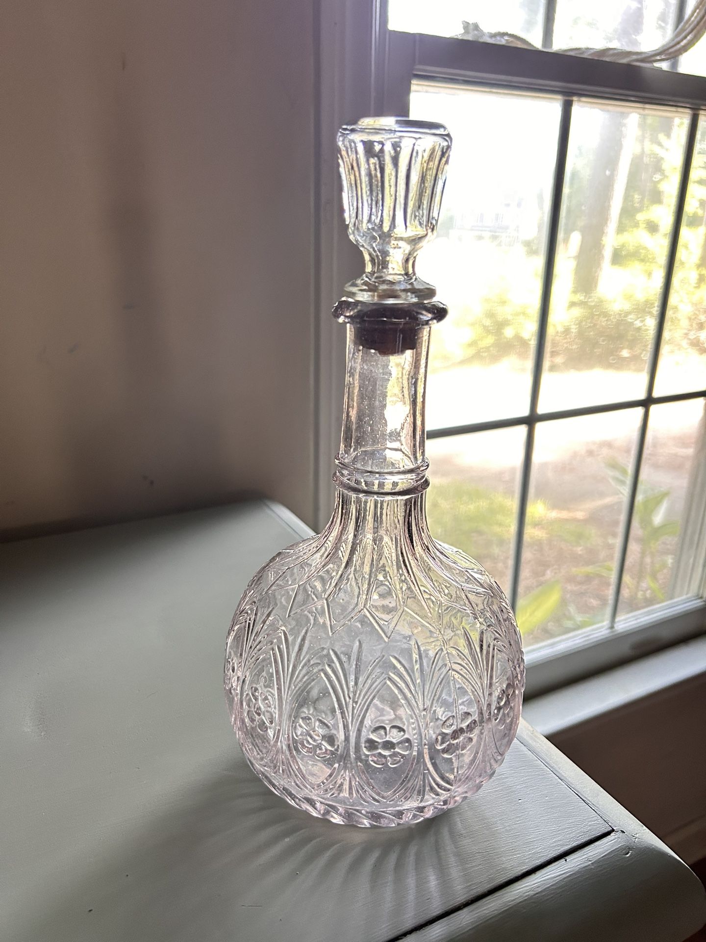 Antique American purple amethyst glass bottle, sandwich. HEIGHT 8 1/2 inches 21.6 cm WIDTH 5 1/2 inches 14.1 cm Same item sales online for 200.00