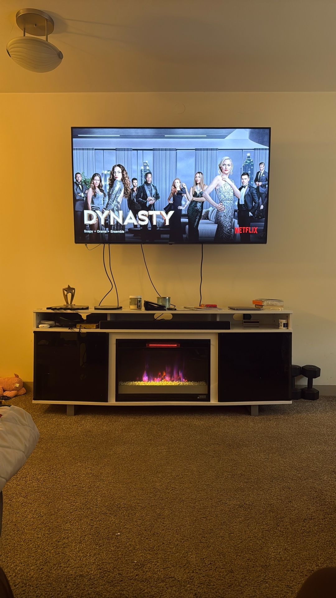 Fireplace cabinet glass doors with plenty of storage. Comes with remote to change color of fire and turn off and on the fireplace. OR BEST OFFER.Pick up only.