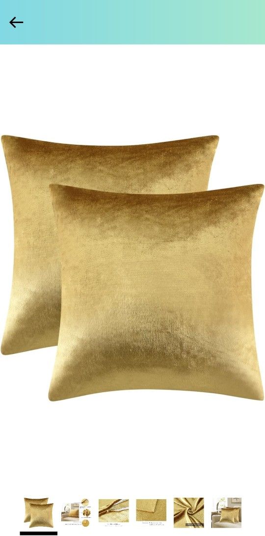 Set of two gorgeous 20x20" velvety throw pillow covers in color gold. Perfect for your Christmas decor, or just to use them year round. Covers only, no inserts.