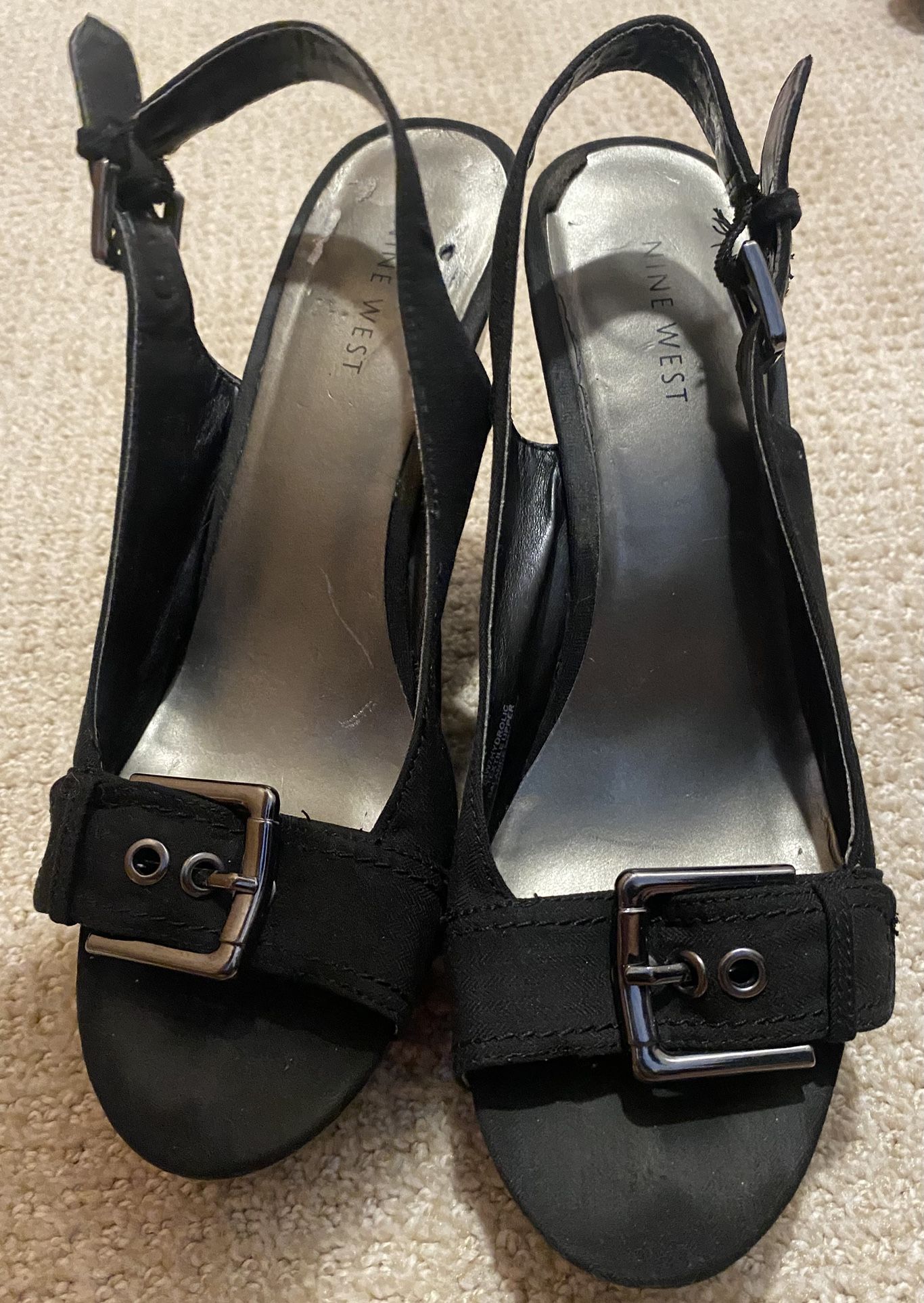 Super cute vintage black wedge heels! Woman’s size 9. Adjustable buckles on toes and ankles. 5 Inch heel. Very easy to walk in and comfortable for long wear. Pick up in renton highlands only