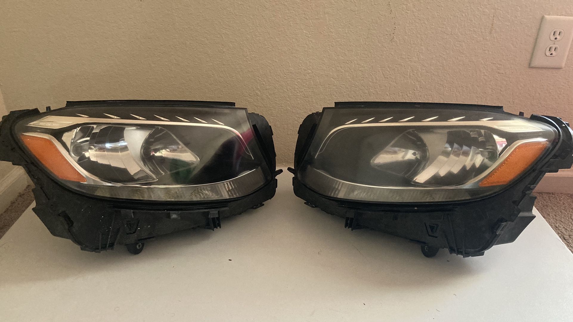 Left and Right side halogen headlight assembly for a Mercedes-Benz GLC-Class, specifically models produced between 2016 and 2019. Here are some key features of the headlight: Type: Halogen Side: Driver's side and passenger Compatibility: Mercedes-Benz GLC250 and GLC350 models from 2016-2019 Housing: Black housing Bulbs: Typically includes halogen bulbs