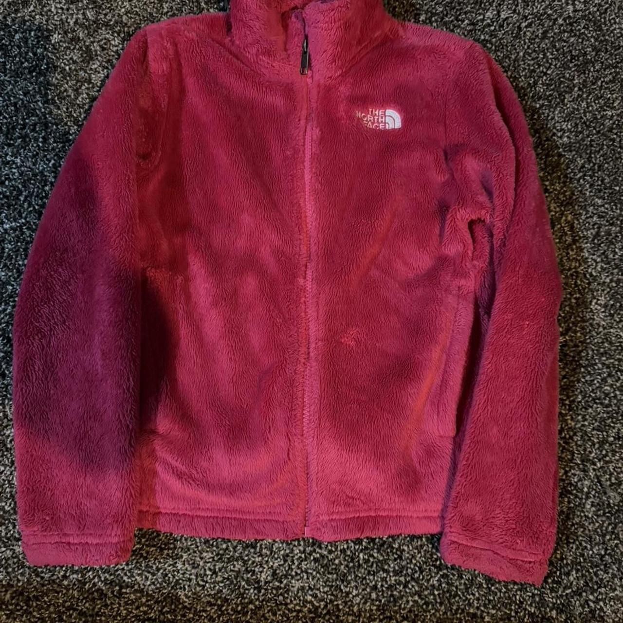 Youth girls fleece north face coat Pink color Side pockets Zipper full length in front North face logo on front and back Normal wear Size medium (10) Door pick up only