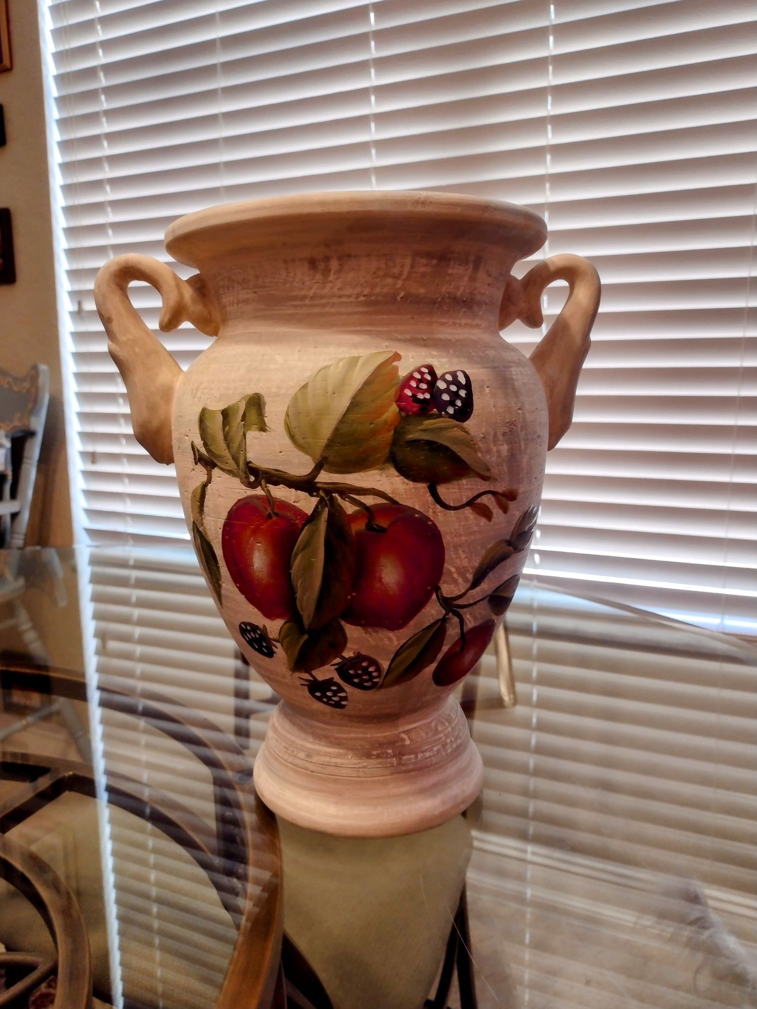 Ceramic Vase, 11 Inches Tall And 10 Inches Wide Including Handles