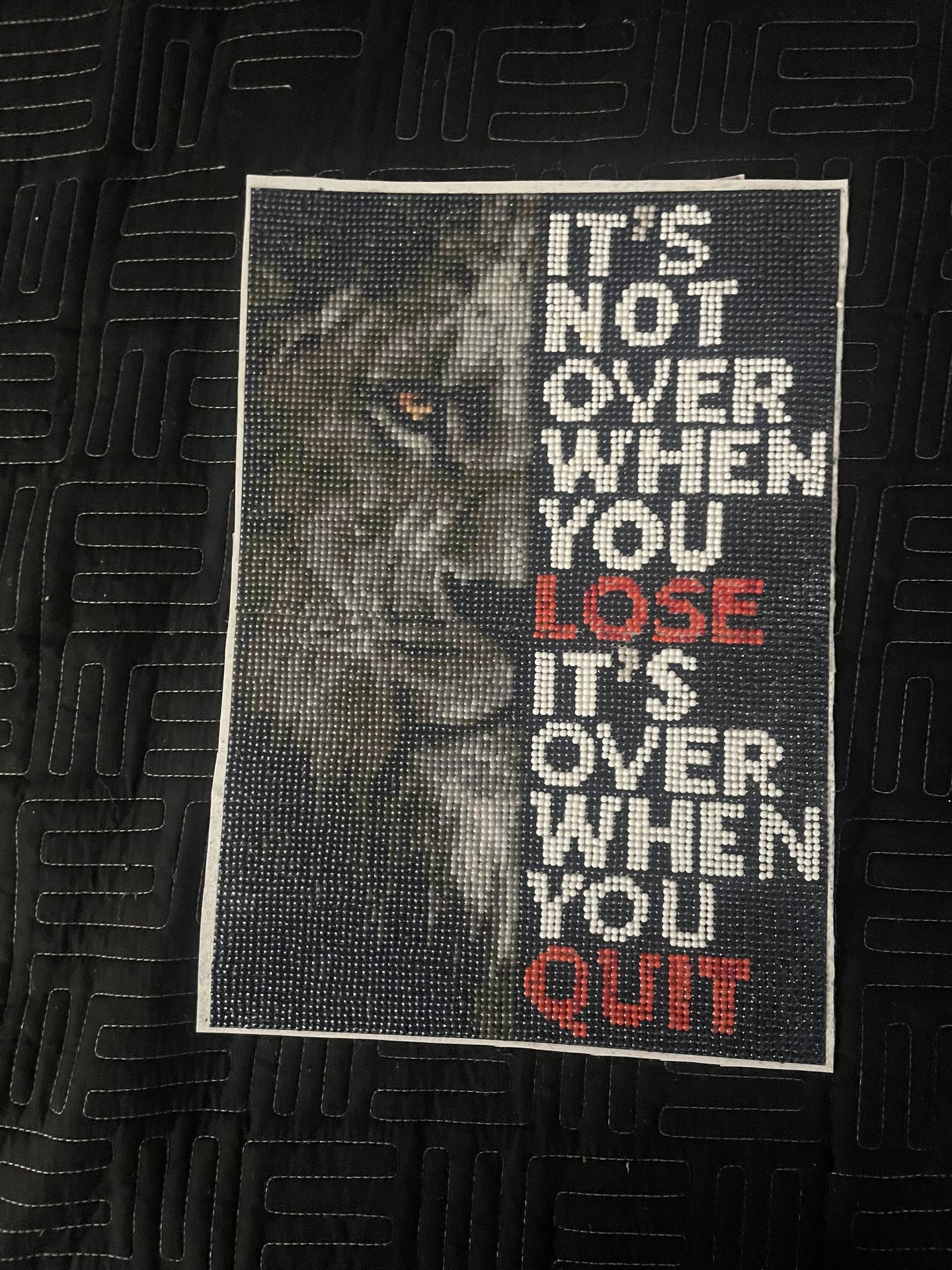 Canvas art with motivational quote and lion image. Finished Diamond art with a great saying on it great for motivation asking 30 obo. Coated with gloss finish