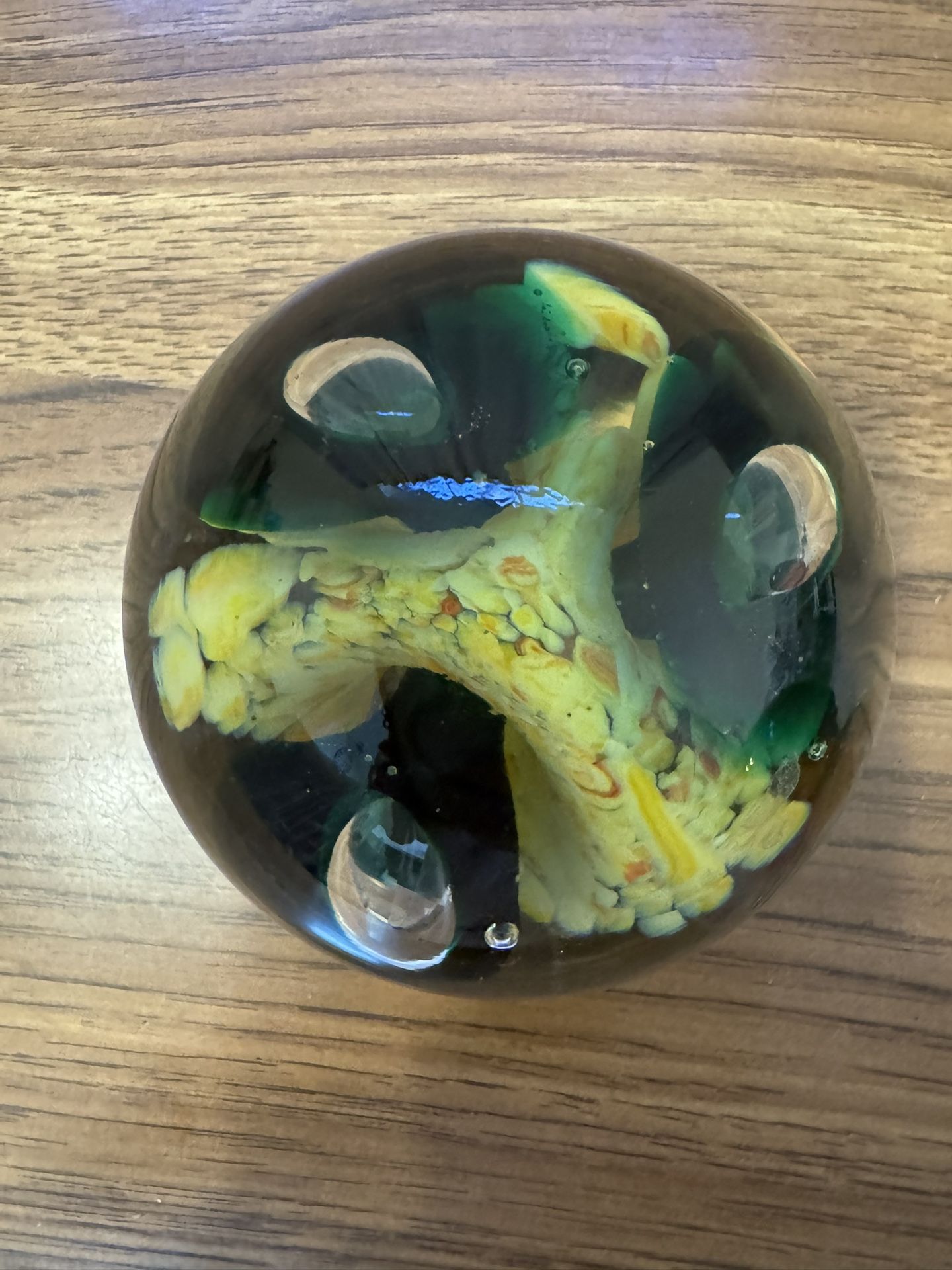 ERICKSON ART GLASS EMERALD GREEN CALLA LILY PAPERWEIGHT 3 1/2"