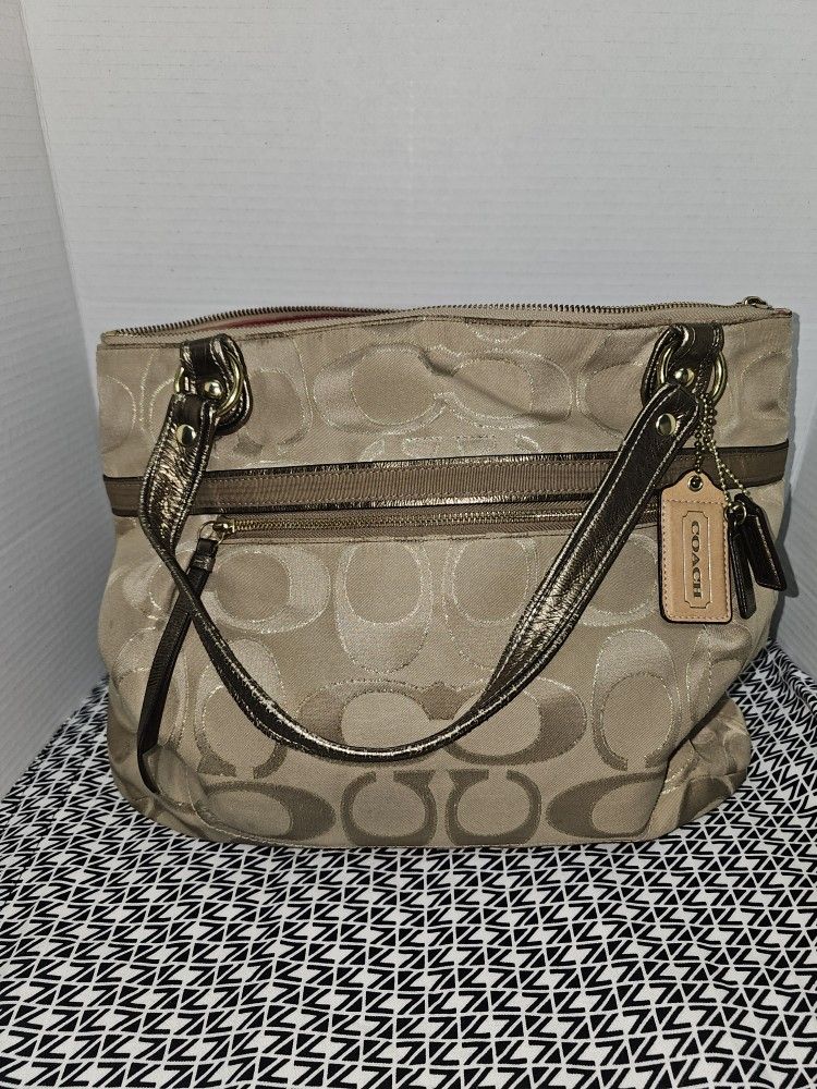 Pre-Loved Coach Poppy Metallic Signature Bag