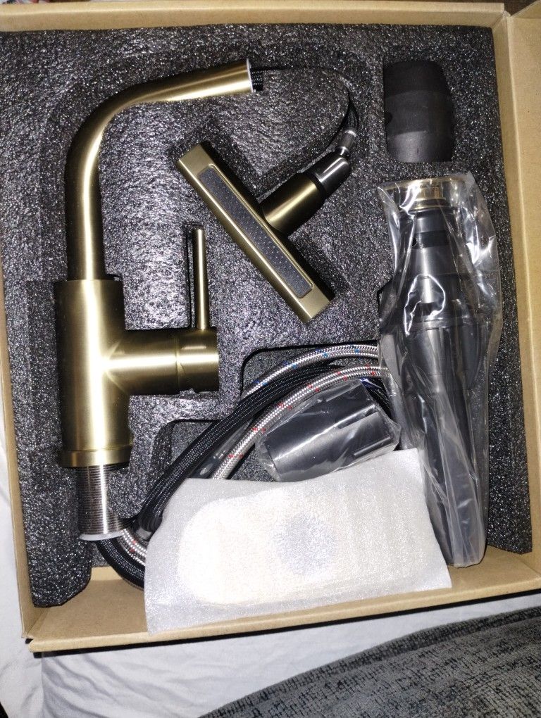 Stylish and modern, this 4 in 1 stainless steel gold faucet can be used in the kitchen, bathroom or the bar. It is easy to install and comes with the drain. The gravity ball is a plus to help the water flow from the pipes to your faucet. Reach farther spaces with the spray hose (20inch). I have more than One, shoot me a message for a deal. This is brand new, never used. Pick up near 14300 briar forest Dr 77077. Or message me for a meeting point.