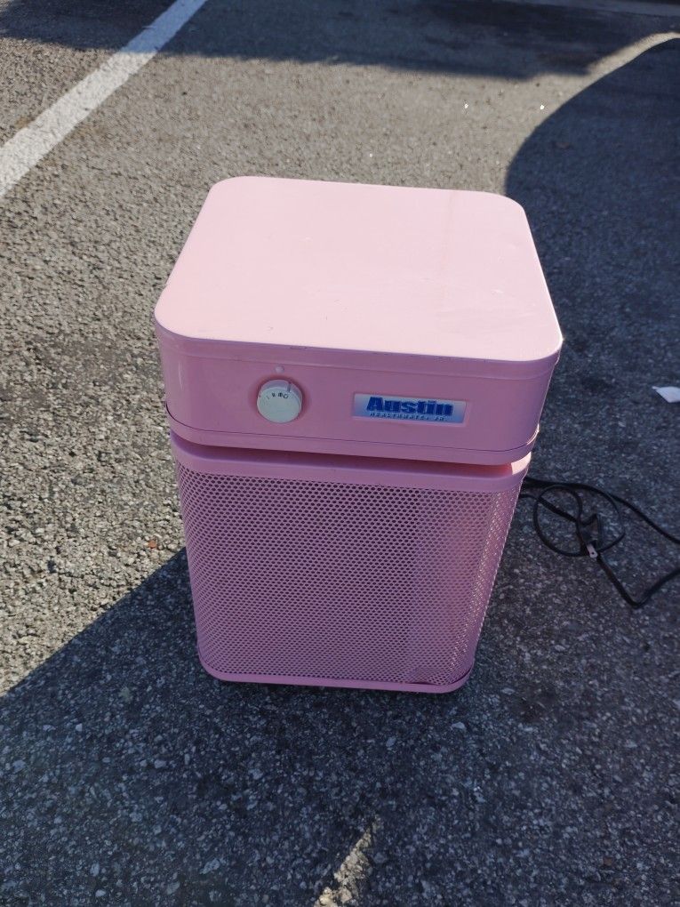 The Baby's Breath Air Purifier by Austin Air in baby pink color is a plug-in air purifier designed to improve indoor air quality. Made by the reputable brand Austin Air, this specific model is designed with a cute and feminine pink color, making it a stylish addition to any home decor. The purifier efficiently filters out impurities and allergens from the air, providing a healthier environment for babies and young children. Perfect for parents looking to create a clean and fresh atmosphere for their little ones. Works perfect change filter not too long ago so it's ready to go. Has a couple of small dents on the bottom for moving around still functions perfect check pictures.. these retail for over 450 brand new this is top of the line..