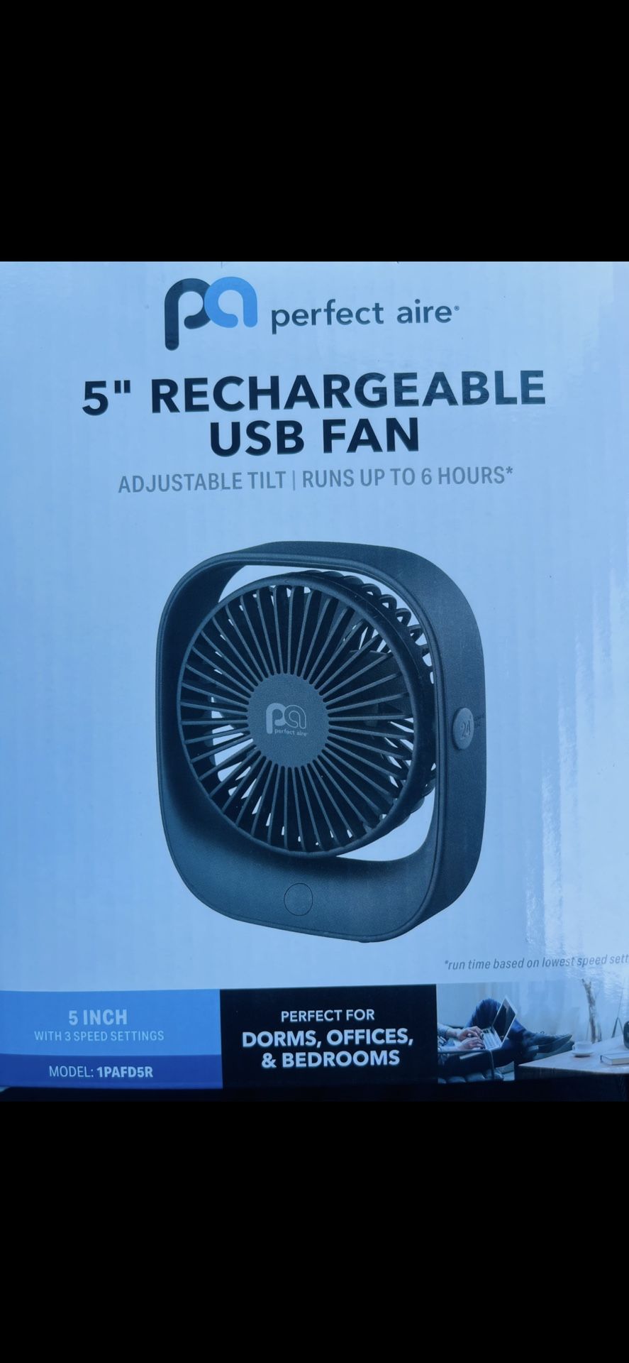 5” inch Rechargeable USB Fan Adjustable Tilt -Runs up to 6 hours Brand New never been used