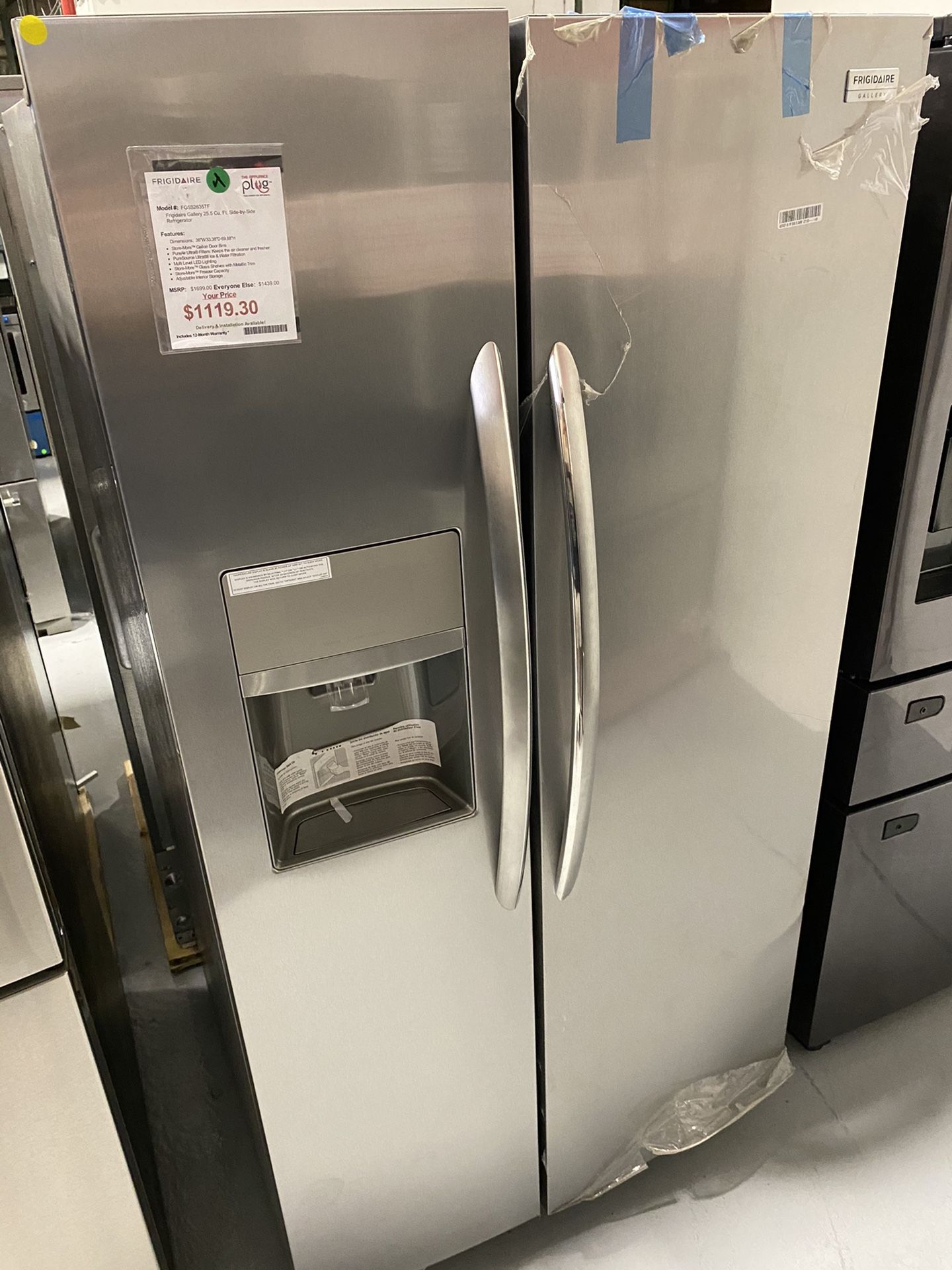New Open Box Frigidaire Gallery Stainless Steel 25.5 Cu. Ft. Side-by-Side Refrigerator Model #FGSS2635TF Dimensions: 36”W 33.38”D 69.88”H Store-More Gallon Door Bins PureAir Ultra Filters: keeps the air cleaner and fresher. PureSource Ultra Ice and Water Filtration Store-More Glass Shelves with Metallic Trim Multi-Level LED Lighting Store-More Freezer Capacity Adjustable Interior Storage Includes a 12-month warranty Financing Available Delivery and installation available Contact us with any questions or to stop by to see this unit and others. Open Monday - Saturday 10am - 6pm Our inventory changes daily. Message us for availability.