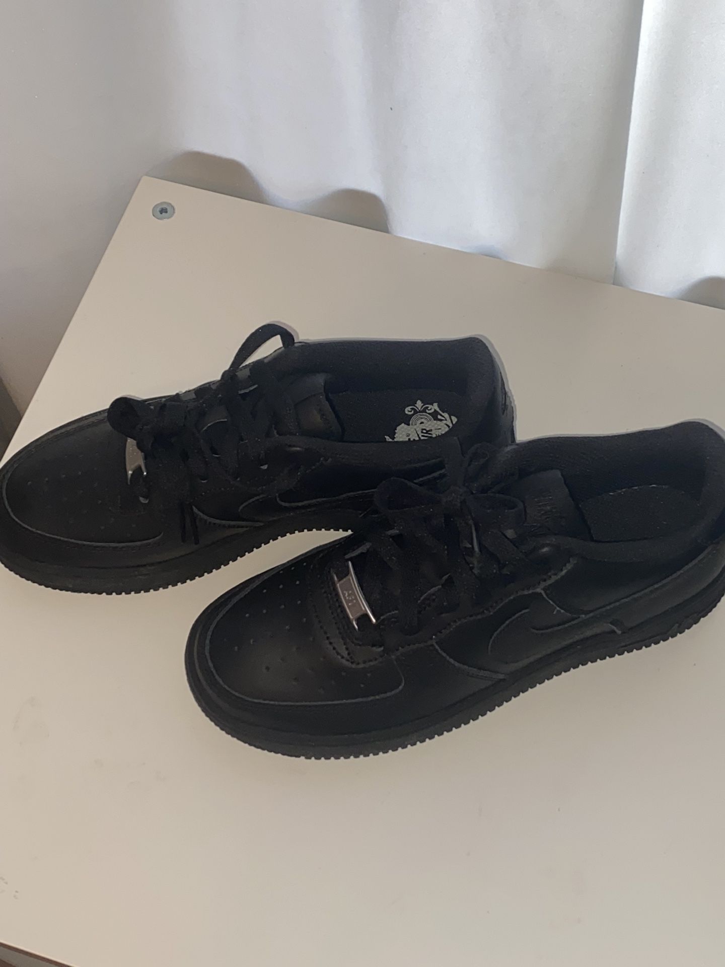 The black air forces are brand new / never worn size 4 youth and the red vans are lightly used size 4.5 men
