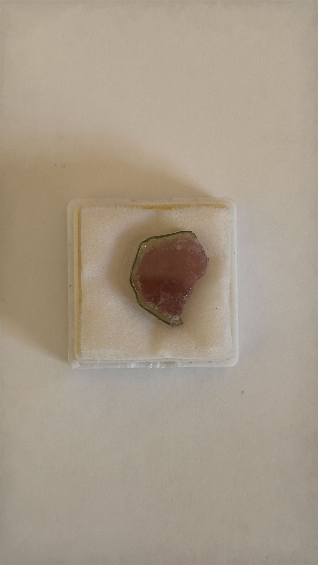 Watermelon tourmaline slice Deep red core Green outer rim of dark and light green Great for jewelry making or collecting. Size: 7.30 carats