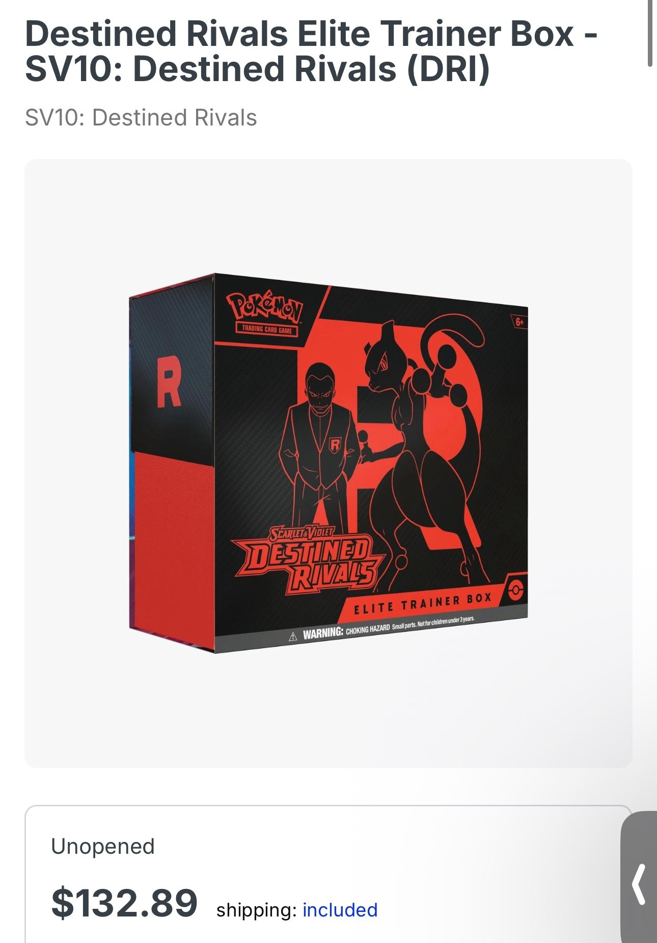 Sealed product for sale ETBS *x2 Destin rivals90$ (market 130$) *x2phantasmal flames 60$ (market 80$) *mega lucario 60$ (market85$) *black bolt 60$ (market 88$) *white flare 60$(market 81$) —-Mega Charizard upc 135$(market 145$+) -booster bundles *x2 Prismatic 40$ (market 60$) *x2 Blaxk blot 35$(market 50$) —booster box *x2mega 180$(marker230$)