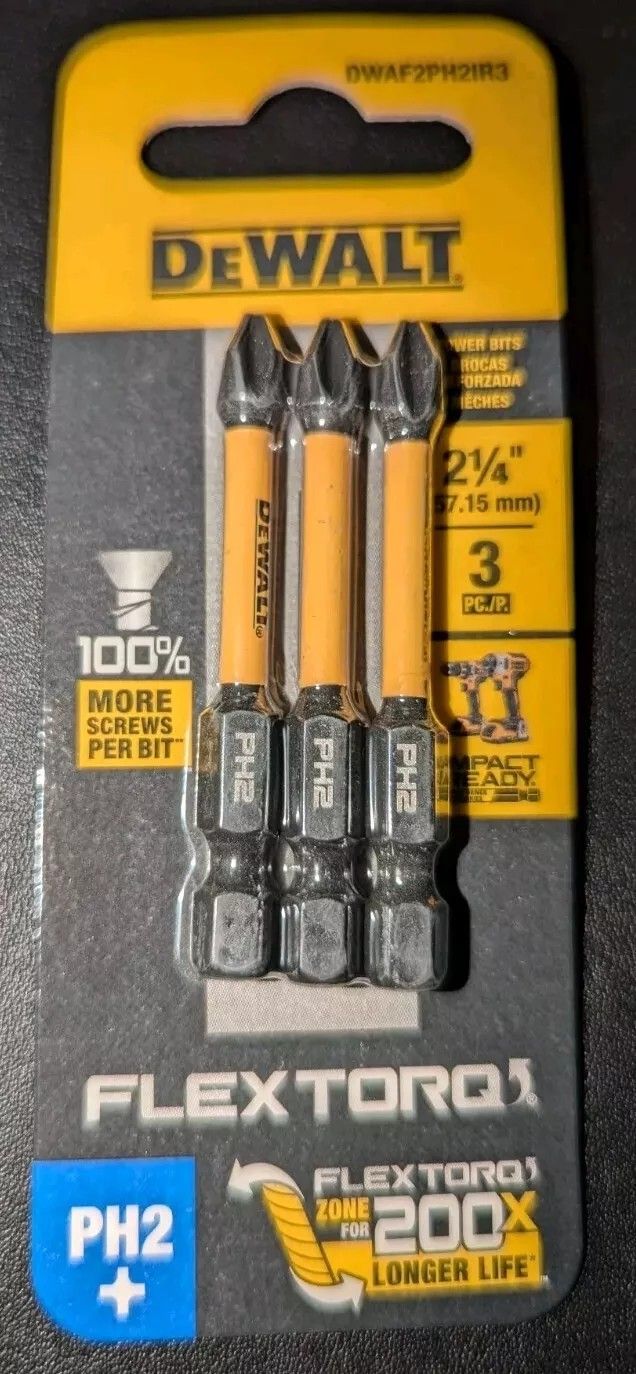 New DEWALT DWAF2PH2IR3 Flextorq 2.25In Phillips #2 - Set Of 3 Bits