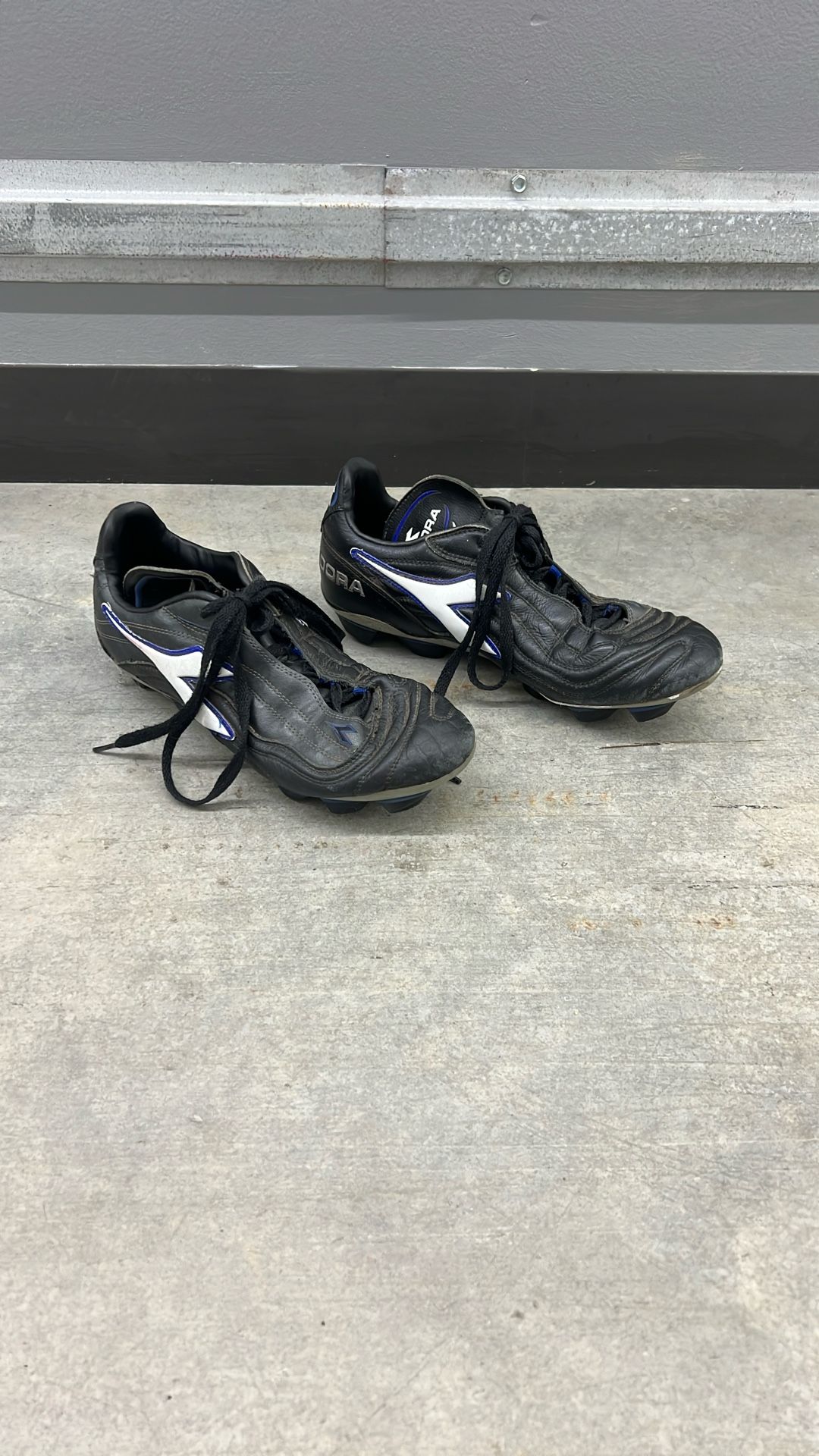 DIADORA Cleats Think these are size 44 These are FREE because the cleats are brittle and breaking off. Maybe someone can fix them π€·π»ββοΈ Cleats material seems you be "sweating" an oily substance.
