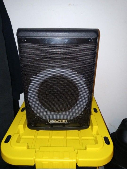 Used. Good condition. No box. Features 8 inch woofer, led lights that can be on or off, aux, bluetooth, usb, sd, mp3, fm radio, rechargeable 1800mah battery, remote control, and wired microphone included. You can also sync 2 of these speakers together. Charge lasts up 5hrs. I don't have the box anymore.