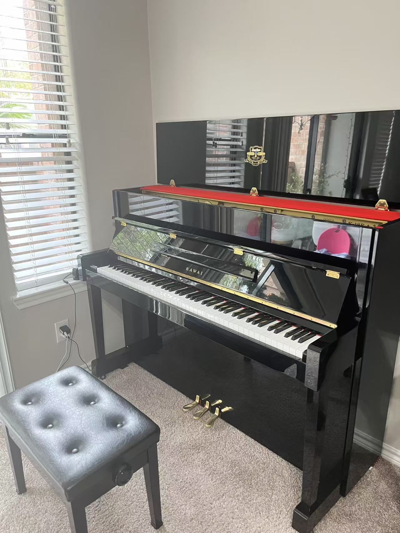 Kawai K-18E upright piano, made in Japan. Serial number: (contact info removed)6 (around 2002). Gently used,sounds good, all keys and pedals work. Piano bench included. Pick up only, located in Houston 77077