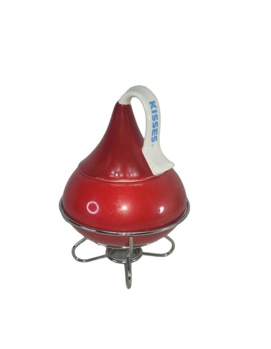 Hersheys 100th Anniversary Limited Edition Chocolate Kiss Dessert Fondue Set Red Condition: Pre-owned, no cracks, clean, it has some small scratches, please check the photos well before buying, no smells Measures : Hersheys fondue red Measures : 6½" (without stand) approx 8¾" ( with stand) approx • Can double as a covered candy dish when not used with the candle • Perfect for entertainment and holiday gathering • Ideal for chocolate and other dessert fondue recipes • A fun addition to any table Included: 1 metal stand for candle ( no included tealight candle) 1 Hersheys candy dish pot red with lid, ceramic I can do bundles and combine the shipping . Smoke-free home