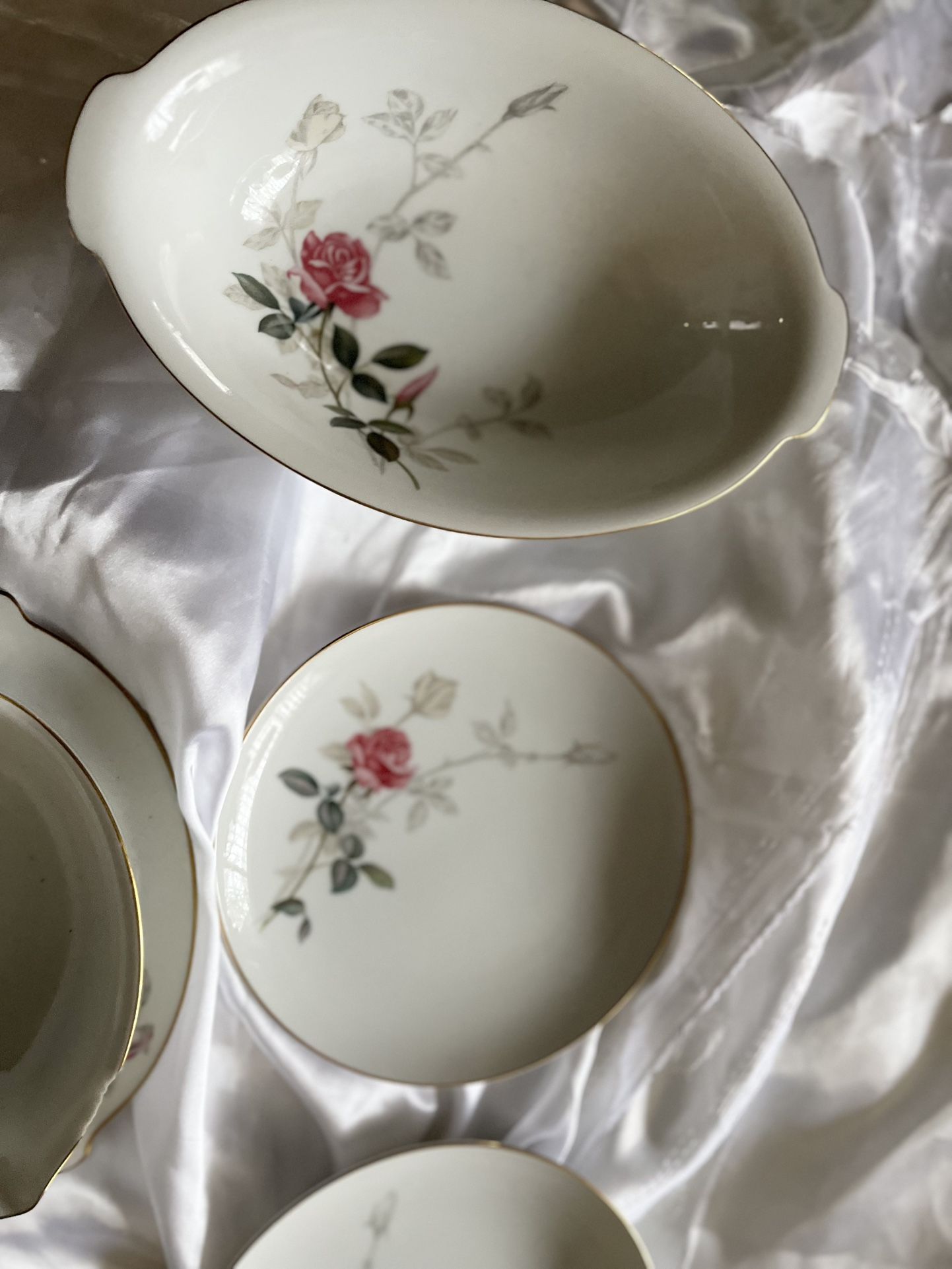 Price is firm Vintage China Dinnerware Set. Includes Plates, bowls, smaller plates, cups, creamer and sugar set. These are in excellent condition. I have most of them wrapped but took a few out to show the pattern of these. Price is firm Pick up in Columbia No holds