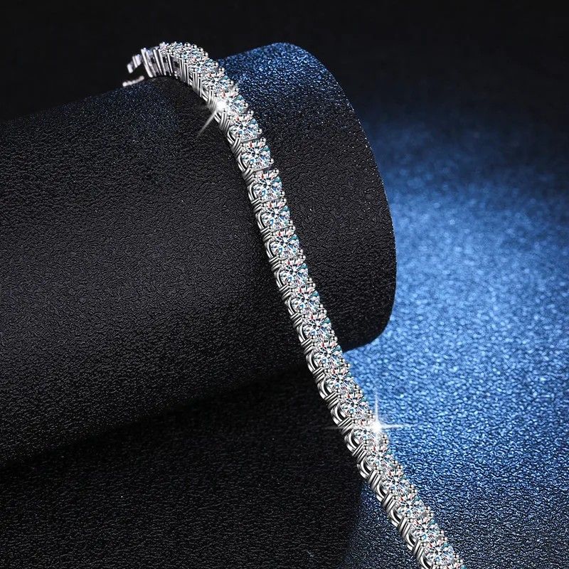 This elegant 3MM Real Moissanite Tennis Bracelet is crafted with 925 silver. Featuring lab-created white moissanite stones set in silver. Making it a beautiful and versatile piece of fine jewelry. Made with high-quality materials and attention to detail, this bracelet is a stunning addition to any jewelry collection. Color D 7.5 inches 5 ctw