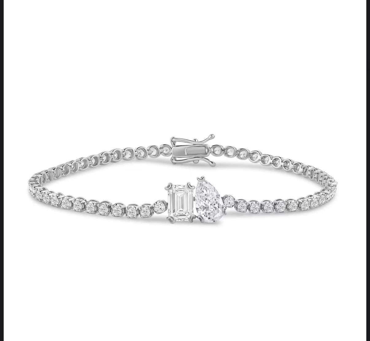 Elevate your jewelry collection with this stunning Helzberg 4 Carat Total Weight Lab-Grown Diamond Bracelet, beautifully crafted in solid 14K white gold. Featuring an elegant and unique combination of emerald-cut and pear-shaped diamonds, this piece blends modern design with timeless sophistication. Originally retailing for $4,249+this bracelet offers exceptional brilliance, high-quality craftsmanship, and a distinctive look that stands out without being overly flashy. Perfect for everyday elegance or special occasion styling. ⸻ 💎 Item Details • Brand: Helzberg Diamonds • Total Diamond Weight: 4.00 ct. tw. (lab-grown) • Diamond Shapes: Emerald Cut + Pear Shaped • Metal: Solid 14K White Gold • Clasp: Secure, polished, comfortable for daily wear • Condition: Excellent, worn gently (or adjust if new) • Original Retail: Approx. $4,999