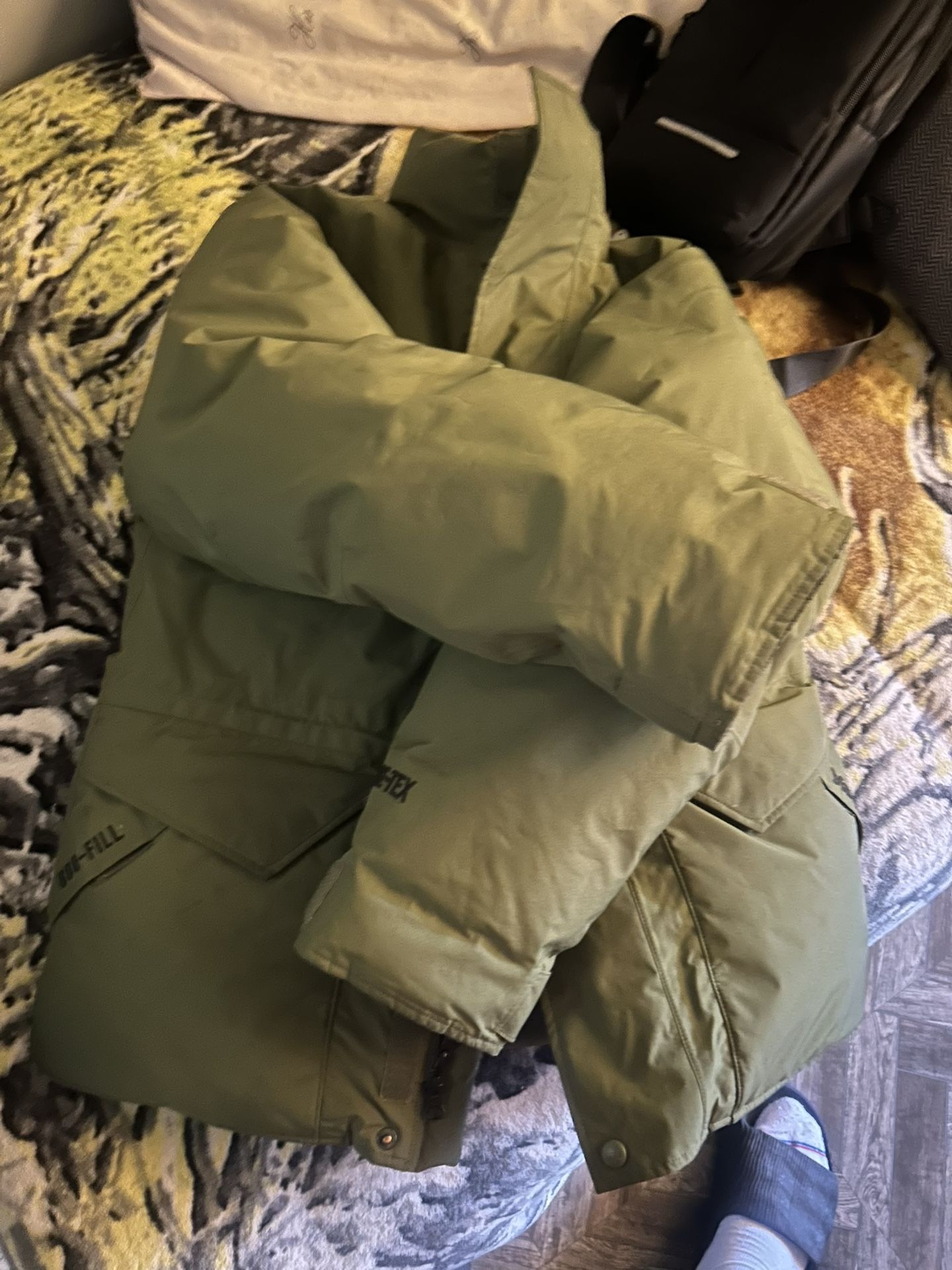The (better) collab biggie size XS only flaw is vaseline got on the left arm now needs to go to the cleaners now the hood got lost price is firm would sell for more if it had the hood (currently in the cleaners right now)