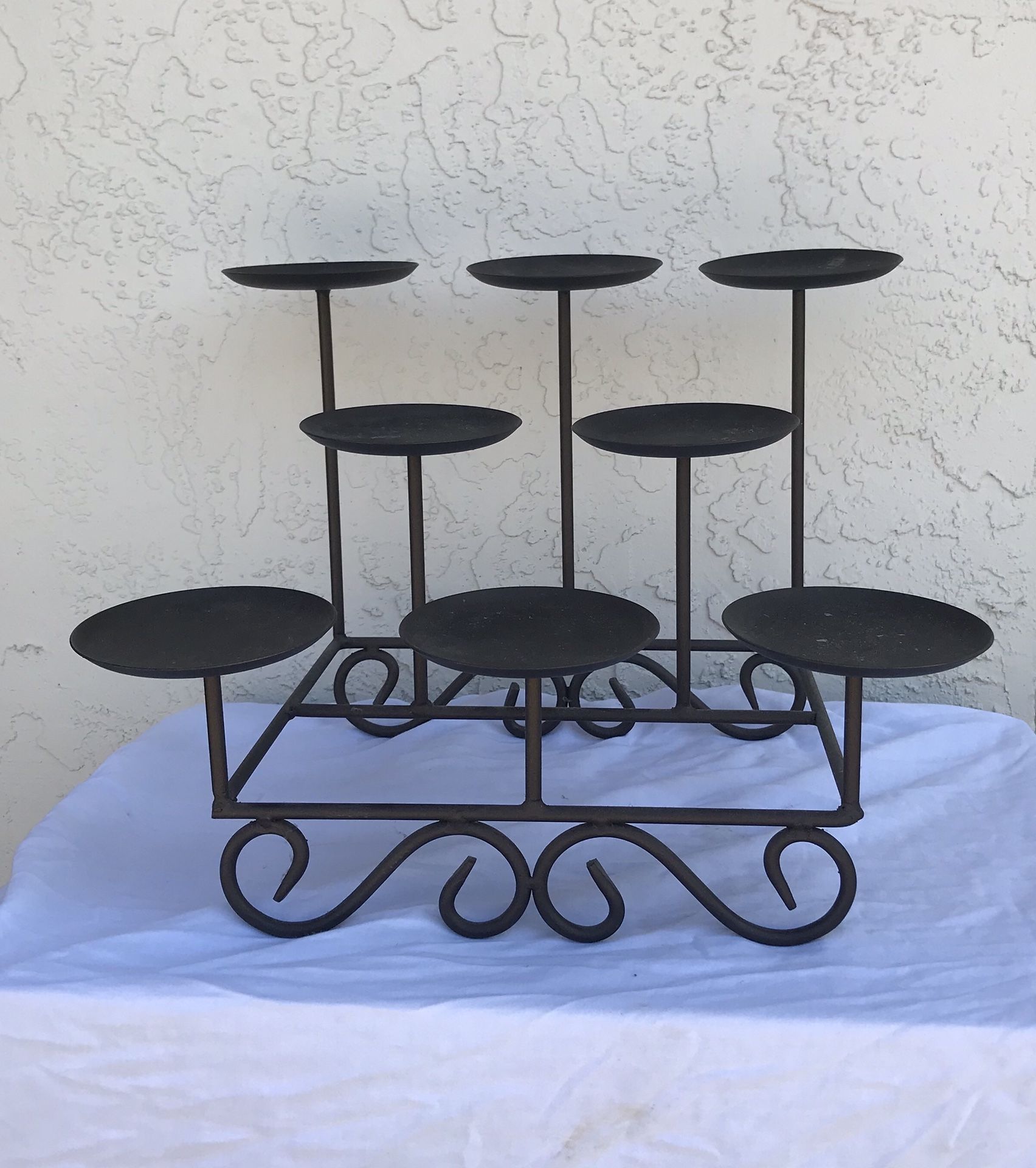 Metallic Candle Holder. Holds 8 candles. Dimensions: 13h. X 17w. X 15d 8 candles holders each 5” diameter