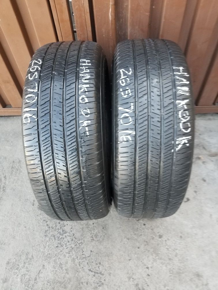 Tires pair 265 70 16 50 % tread brand hankook dynapro dot 16 chulavista montadas y balanciadas Main tire shop de 8am a 6pm domingo 9 a 2 pm $90 dlls