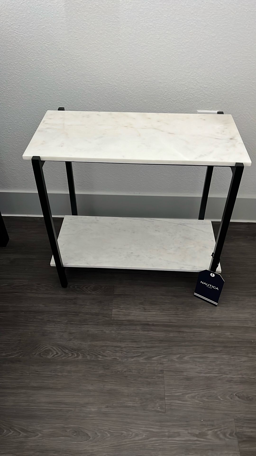 (2) marble, white and black end tables