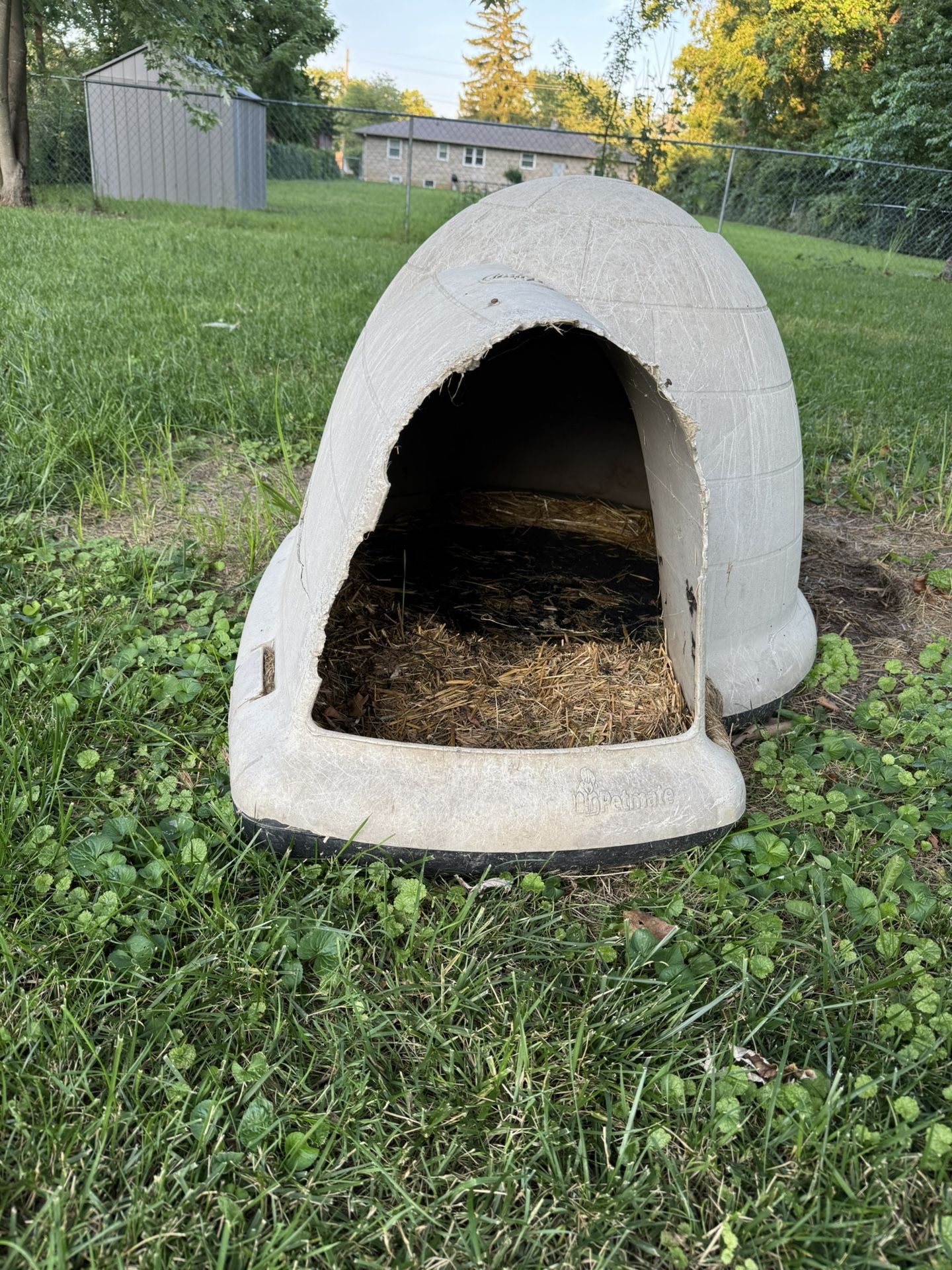 Dog House For Sale. Dog House Is In Good Condition, Free From Cracks and Holes. This Dog House is Completely Weather Proof and with Hay or Straw Can Keep Dogs Warm in Winter. This Dog House Brand is Over $200. Can Accommodate 1 XL Dog, 1-2 Large Dogs and 1-4 Small Dogs.