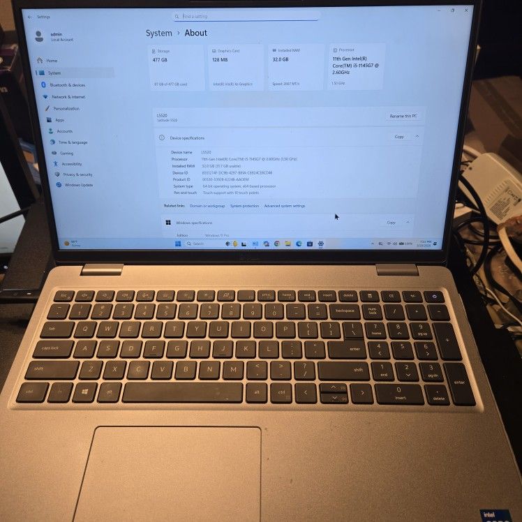 Dell Latitude 5520, 15.6 in laptop, 11th gen i5 Processor, 16 GB RAM, 512 GB SSD 2 x USB-C (Thunderbolt 4) ports HDMI and Ethernet ports.... Fresh load WIN 11 Pro OS O365 Application No bios or os password Come with usb-c power adapter