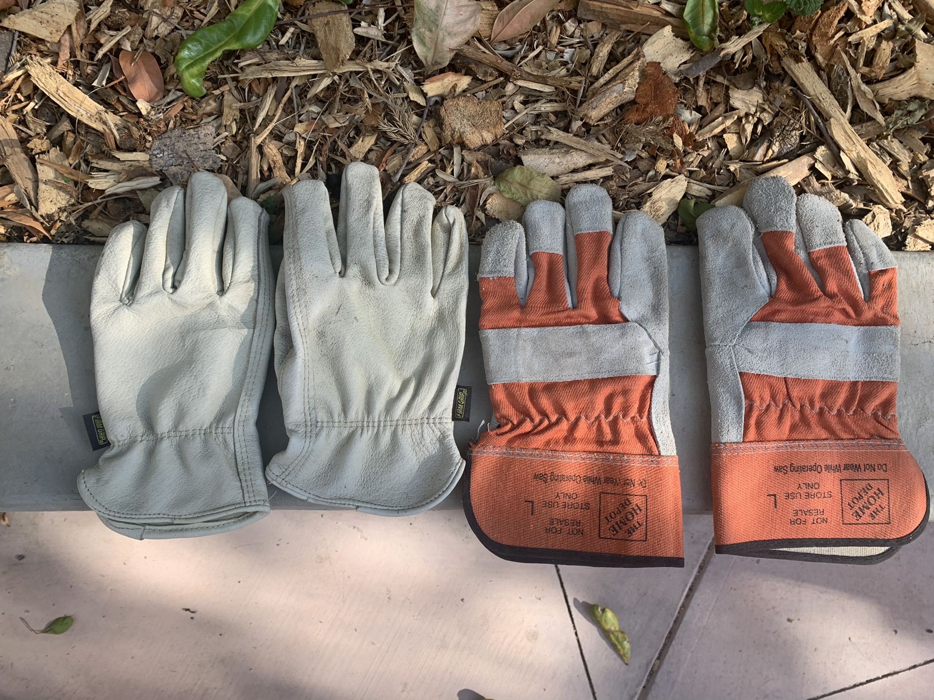 Real leather heavy duty work gloves. Used only a couple times. Size Large $10 for both pairs.