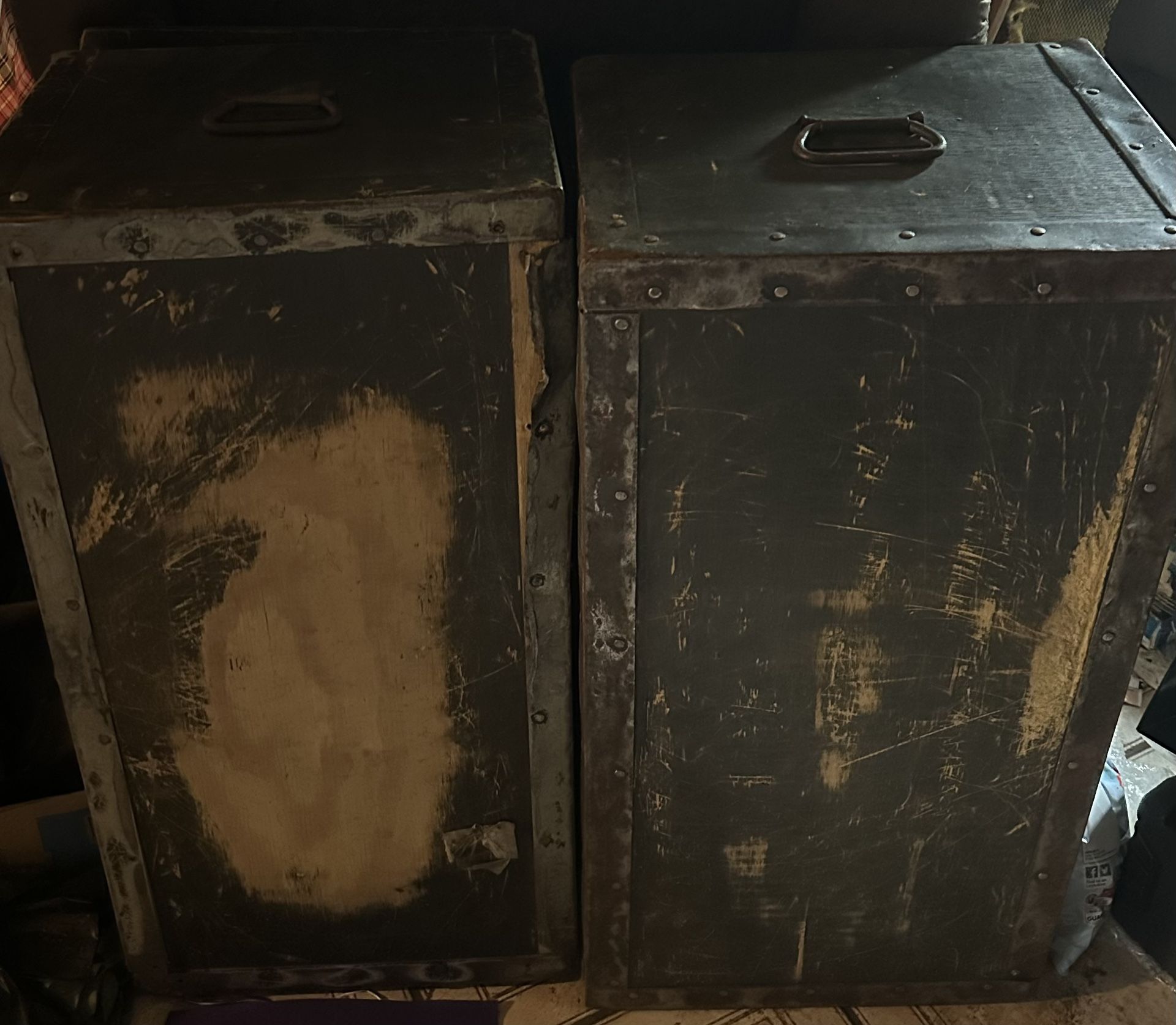 These are both vintage military heavy wood foot lockers with inserts. $120 each or take both for $200