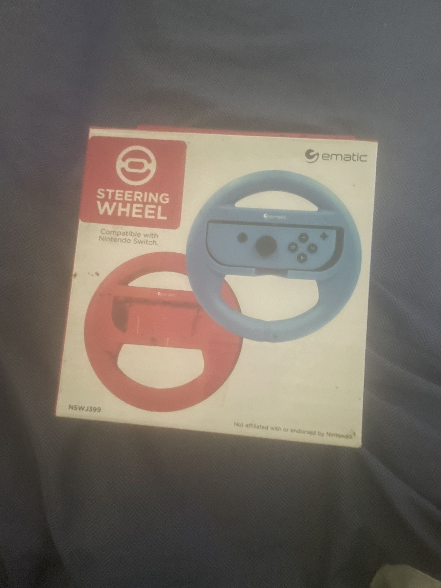 Ematic steering wheels for a Nintendo switch. 2 wheels, red and blue. Box was opened but they were never taken out of the plastic