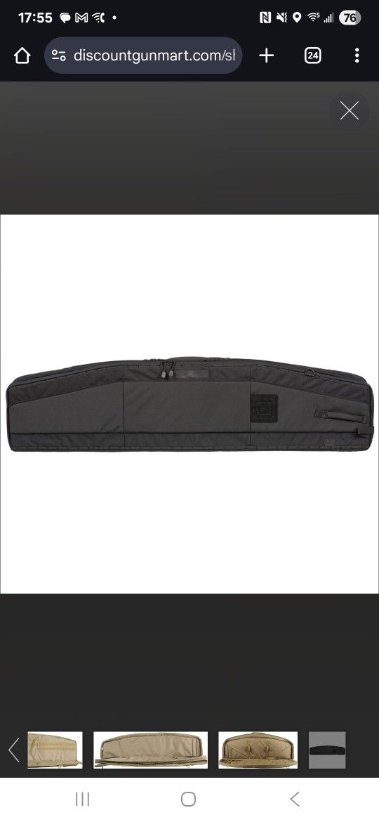 5.11 Tactical rifle bag its dual pockets, covert edition, 50" in length. Its a great rifle bag still in great condition I could fit my rifle , shotgun, two pistols and range gear its fantastic. You can carry it like a backpack and the straps can tucked away and you handle carry. If you're into long range shooting you can use it as a mat.