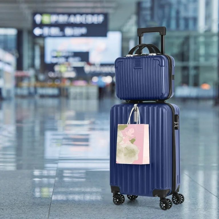 2PCS Luggage Two Piece Rolling Luggage Set Lightweight With Hook 20″ + 14″ Blue